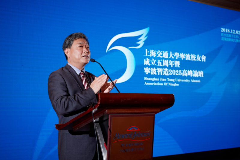 上海交通大学宁波校友会成立五周年纪念活动暨宁波智造2025高峰论坛12月2日在宁波举行。上海交通大学校长、党委副书记、中国工程院院士林忠钦,党委常委、副校长张安胜,校友总会办公室副主任桑大伟,特聘教授、人工智能研究院副院长马利庄,宁波市智能制造协会专家咨询委员会主任、浙大联科总裁陈峰华,以及来自上海交通大学杭州校友会和兄弟高校校友会代表应邀参会,近200位在甬校友参加活动,共聚一堂。活动由2013届校友叶成城和2018届校友屠凌嘉主持。