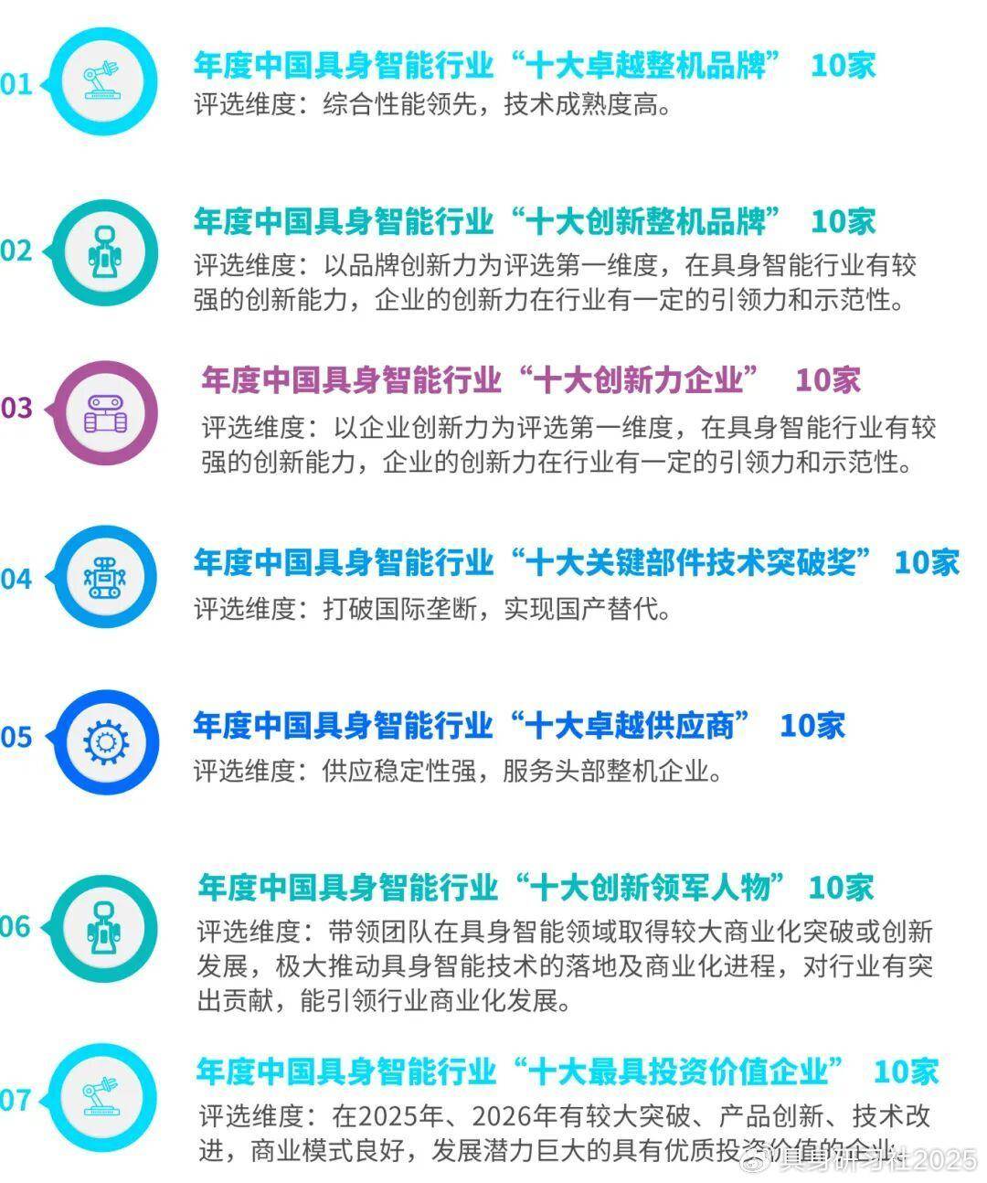 2026中国具身智能产业年度颁奖盛典,将不仅仅是一场颁奖礼,它更是一次行业的集结号、风向标与催化剂。我们期待与所有与会者一道,在“AI智行”的浪潮中驭势而上,共同开启一个智能机器人普惠大众、与人类和谐共生的崭新纪元。