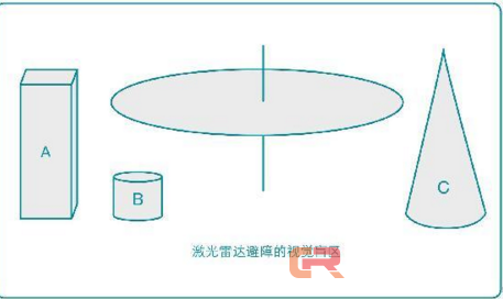 如图,二维激光雷达是360度程度视场角的间隔丈量,其量程规模内的多半妨碍物都能由于对激光的反射而被丈量到,然则激光雷达只能检测到A和C物体的存在,没法检测雷达扫描立体下的B物体,而假如A和C物体高低外形纷歧,则机械人没法依据雷达扫描丈量妨碍物间隔的数据,完成精确避障。