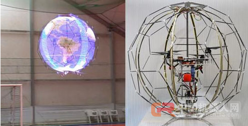 球形框架的直径约为88厘米(约34.5英寸),全部装有没有人机的装配分量仅为3.4公斤。LED显示屏的分辩率为144 136,外面是一个从底部凸起的双臂无人机。