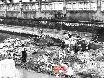 施工人员在美舍河安得园停止施任务业。