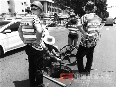 将潜望镜放下井。(海口市排水所供图)