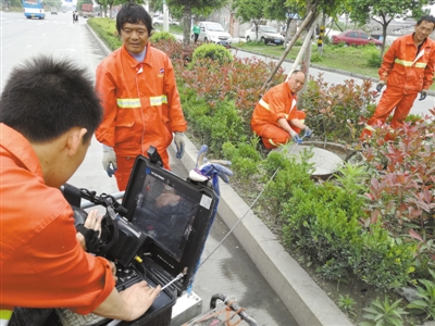 在车站年夜道施工现场,相干功课人员正经由过程电脑掌握小机械人在昏暗狭小的管道内,给下水管做“胃镜”。机械人自带高分辩率探测仪,可360度扭转、起落,经由过程传输线,及时传输到空中掌握箱的显示器上,一切数据均同步传输到掌握终端,并生成图,管道受损、淤塞及严重水平等均有定位标志。