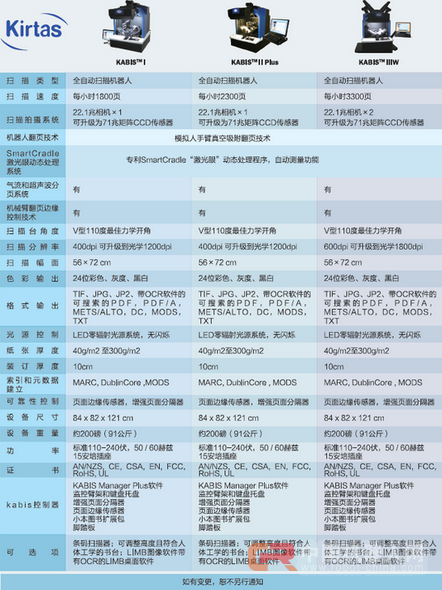 全主动书刊扫描仪机械人是方圆慧图 公司最新推出的一款划时期的产物,专为年夜量图书档案数字化而研发这台机械人采取了人工智能最新技巧,模仿人工翻页制作的机械手臂乃至比人手还要柔柔不会破坏檀卷书本纸张而且翻页速度也是可以调剂,假如是比拟陈旧的书本调剂慢速可以避免对纸质的毁伤,上面就和小编一路来懂得一下这款机械人kabis吧。 全主动扫描机械人kabis活着界各年夜数字化项目中都有涌现过好比已经活着界上年夜型的数字化项目中都有介入(Google寰宇藏书楼、微软在线藏书楼、美国哈佛年夜学、英国剑桥年夜学……)在中国的高校也涌现过它的身影例如上海商学院用来扫描古籍、延边年夜学用来停止图书材料数字化等。为何会获得这么多客户的喜爱呢?起首因为它本身壮大的功效可以知足客户的需求有了它可以不再用高速扫描仪;有了它可以不再用滚筒扫描仪;有了它可以不再用平板扫描仪等等。 全主动书刊扫描仪kabis其完善的摸拟人手臂真空吸附翻页技巧,乃至比人手翻页加倍的柔柔。最年夜水平的削减由于人手的触碰对名贵原件的损毁。每小时最高达3000页的全主动扫描速度,7*24小时一直机的完善工业级设计。可以蒙受最高速和最高强度的数字化任务。KABIS将和您一路迈向数字化4.0时期。 V100度的书托角度支撑罕有软弱的古籍、檀卷。 元数据检索和创立MARC记载,DublinCore文件,和MODS文件。 METS/AL TO兼容的输入。 输入TIFF、JPG2000、JPG,PDF/A和更多格局文件。 壮大的全主动扫描掌握体系包含了更多主动化功效,以最小的干涉,最高效准确的处置图象、OCR辨认、全主动标注图书檀卷索引元数据。全主动书刊扫描仪由高速的扫描速度来完成图书电子化。 最新的Kabis Manager Plus软件供给了简略的用户界面,让您可以敏捷开端数字化操作。新的接口供给了更便利的页面捕捉监控和治理的精准度。真正让您做到了说笑风生间完成海量数字化任务。