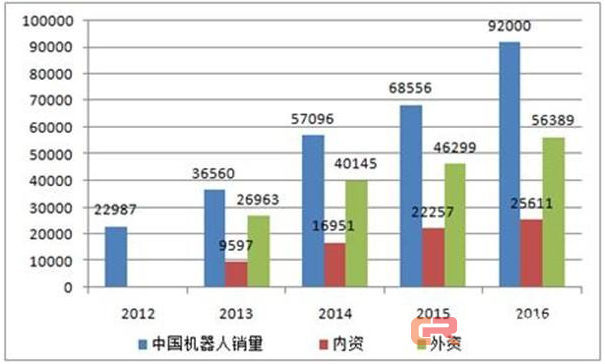 2016年上半年我国共完成国产机械人销量1.97万台,按可比口径盘算较上年增加37.7%,增速比上年同期加速 10.2个百分点;斟酌到后期研发企业完成投产、新企业进入等身分,现实销量比上年增加70.8%。全年国产工业机械人跨越3.4万台,同比增加近60%。假如加上外资企业的销量,国际机械人的装机量将跨越9万台,同比增加34.2%。