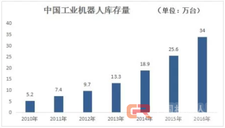 据前瞻家当研讨院懂得到,中国曾经是全球机械人最快的市场,2016年中国工业机械人的库存量为34万台,绝对上年同比增加了32.81%。别的,估计2018年到2020年的复合增速为15%-20%之间。