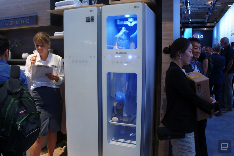 LG在几年前就推出了名为Styler的产物,它能够会从新界说我们若何洗衣服。从实质下去说,它推出的产物是一个衣橱年夜小的盒子,你可以把衣服挂在外面,让机械来洗清洁。你只需在底部填满水,外面衣服就会赓续地摇摆和加热,直到它们清洁、没有褶皱。