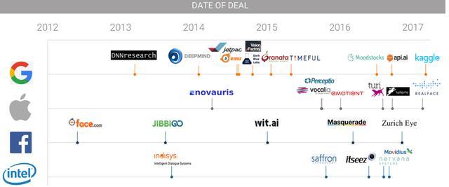 一张图让你晓得这四家科技巨子收买了若干AI创业公司