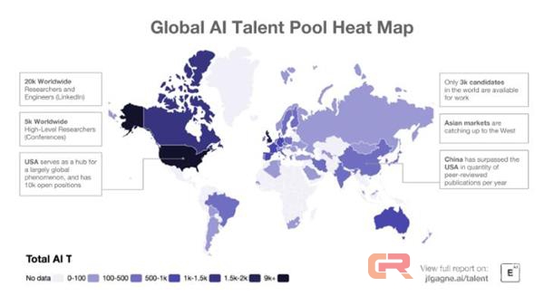 在中国地域,今朝“30万活泼研讨人员和从业人员中的20万”曾经受雇于该行业。而年夜约10万人正在学术界停止研讨或进修。但这傍边包含了全部技巧团队,而不只仅是专门练习有素的专家。