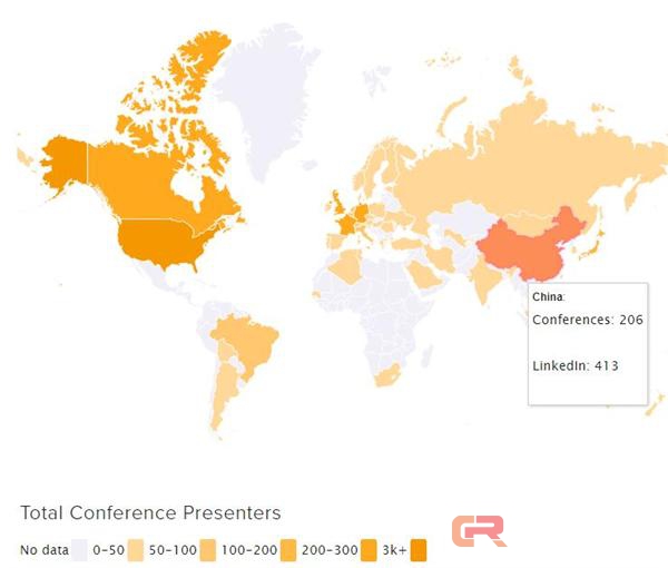 列国AI峰会顶尖佳宾数目散布