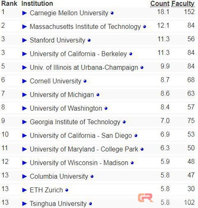 近日,CSRankings颁布了2018年从事盘算机迷信(包含人工智能)范畴研讨的高级院校排行榜,榜单显示,卡耐基梅隆年夜学、麻省理工学院和斯坦福年夜学排列全球前三。