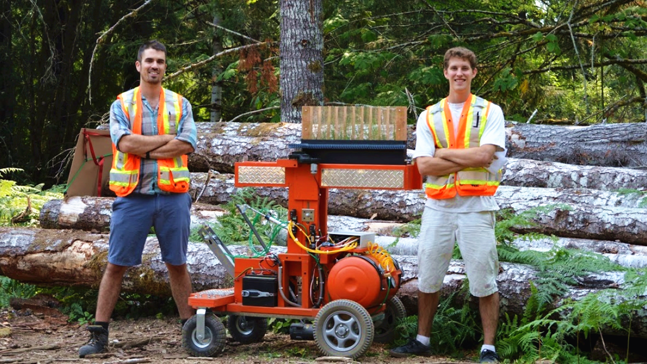 说起创造这机械的念头,本来是Nick为了去巴西见一个妹子,并顺着亚马逊河徒步的时刻,发明的尽是被乱砍乱伐的雨林,两人心境都异常繁重。因而,Nick回来以后,就拉上好基友Tyler,一路逃课完成这台种树机械人,Tree Rover。