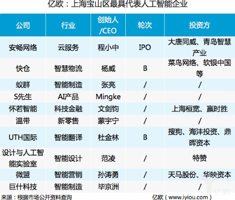 为此亿欧统计了宝山区最具代表的人工智能企业,供年夜家参考(排名不分前后)。