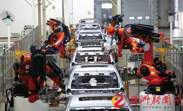 今朝株洲基地两个工场共无机器人300余台,到本年底“B项目(产线搬家与产物导入)”完成后总数将超500台。