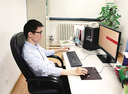 “初春江上雨初晴,杨柳丝丝夹岸莺。画舫烟波双桨急,小桥风波一帆轻。”万小军在办公室任务中。本报记者 沈 慧摄