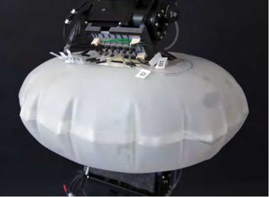 它的手指也是柔嫩的,充斥了空气,它们是在一个可以或许放置坚固或柔韧的资料的3D打印机中制作出来的。举个例子,每一个充气手指里的压力传感器都邑让机械人晓得一个指尖能否压得太年夜力了或许蒙受了一切的分量,并指导着机械人手臂调剂本身的抓力。