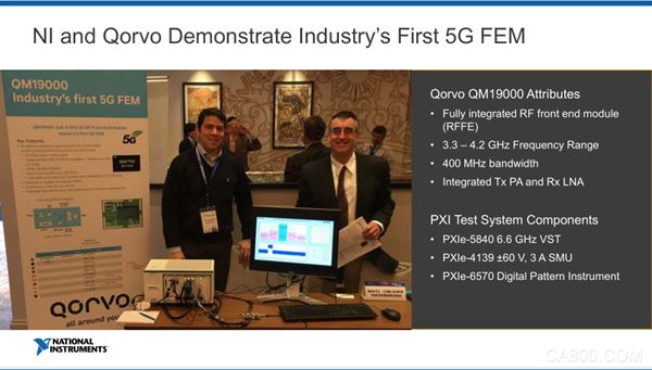 最偶合的是,一同加入第七届EEVIA年度中国ICT媒体服装论坛t.vhao.net暨2018家当和技巧瞻望研究会的就有业内首款市售5G RF前端模块供给者Qorvo,Qorvo的演讲佳宾在现场特殊提到,NI作为Qorvo的测试协作同伴,结合测试了这款集成了一个功率缩小器和一个低噪声缩小器的5G FEM。借助NI PXI体系的灵巧性,Qorvo可以在反复应用雷同的硬件条件下,应用各类波形疾速测试FEM设计。