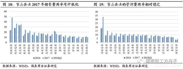 在制品家具公司里,软体公司的支出提速最为显著,行业集中度加快晋升。喜临门2017年家具主业完成发卖支出31.87亿元,同增44%,2018年Q1完成发卖支出亿元,同增84%;顾家2017年完成发卖支出66.65亿元,同增39%,2018年Q1完成发卖支出18.52亿元,同增34%。