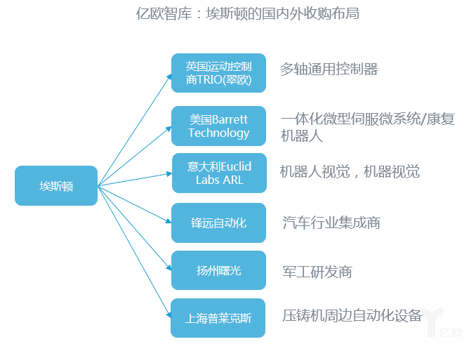 经由过程国际外相干机械人范畴的收买剖析,亿欧智库发明,经由曩昔两年的收买,一些有实力的国际机械人企业,或制作企业,曾经初步完成了从下游焦点零部件到下流行业集成的结构(例如上图埃斯顿主动化),但还有许多机械人相干企业只是收买了个中部门环节,还没完玉成家当链结构。