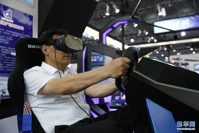 5月25日,世界制作业年夜会上,市平易近体验VR智能驾驶。新华网 陈扬 摄