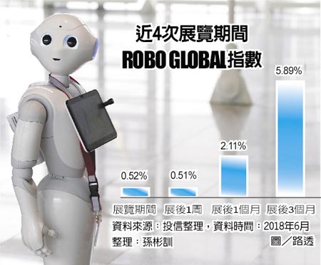 依据统计,比来四届慕尼黑机械人展览会时代,ROBO GLOBAL全球机械人及主动化產业指数均匀下跌0.52%,并且展后热度延烧,后一个月与后三个月均匀涨幅分离为2.11%与5.89%。